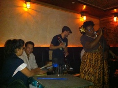 From there? Picked Noelle up from Think Coffee and we headed to a bar called Von. Last year when I saw Fela! On Broadway, I stayed back to meet the drummer for Antibalas and decided to reconnect with him on this trip as well. He invited me out to a delicious night of live music and Afrojazz and Noelle got her groove on. I sat in with Percussionist Ray who happened to play with Afrobob Alliance!! Joe McCarthy’s band!!