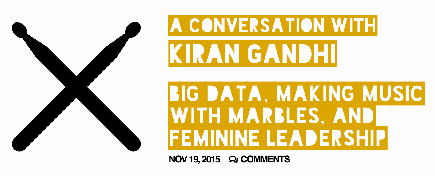 KG: What I try to do is think about when I am so in the flow, so present, that I’m not thinking about anything else. First, it is when I am speaking about gender equality. Second, it is when I have been innovating in the music industry, either with my boss at Interscope Records, or when I was at Harvard running this group, Music Minds, which hacked problems in the music industry. Finally, it is when I am playing and creating music. I like focusing my attention this way, rather than saying, “oh what’s my fifteen year plan from now?” Because then, I don’t have to have any regrets, I just get to be true to Kiran of this moment. If I am so committed to this fifteen year goal without recognizing what Kiran of the present needs, that fifteen year goal will never be achieved because I am not being honest about the current building block that needs to happen today, the current atomic moment.