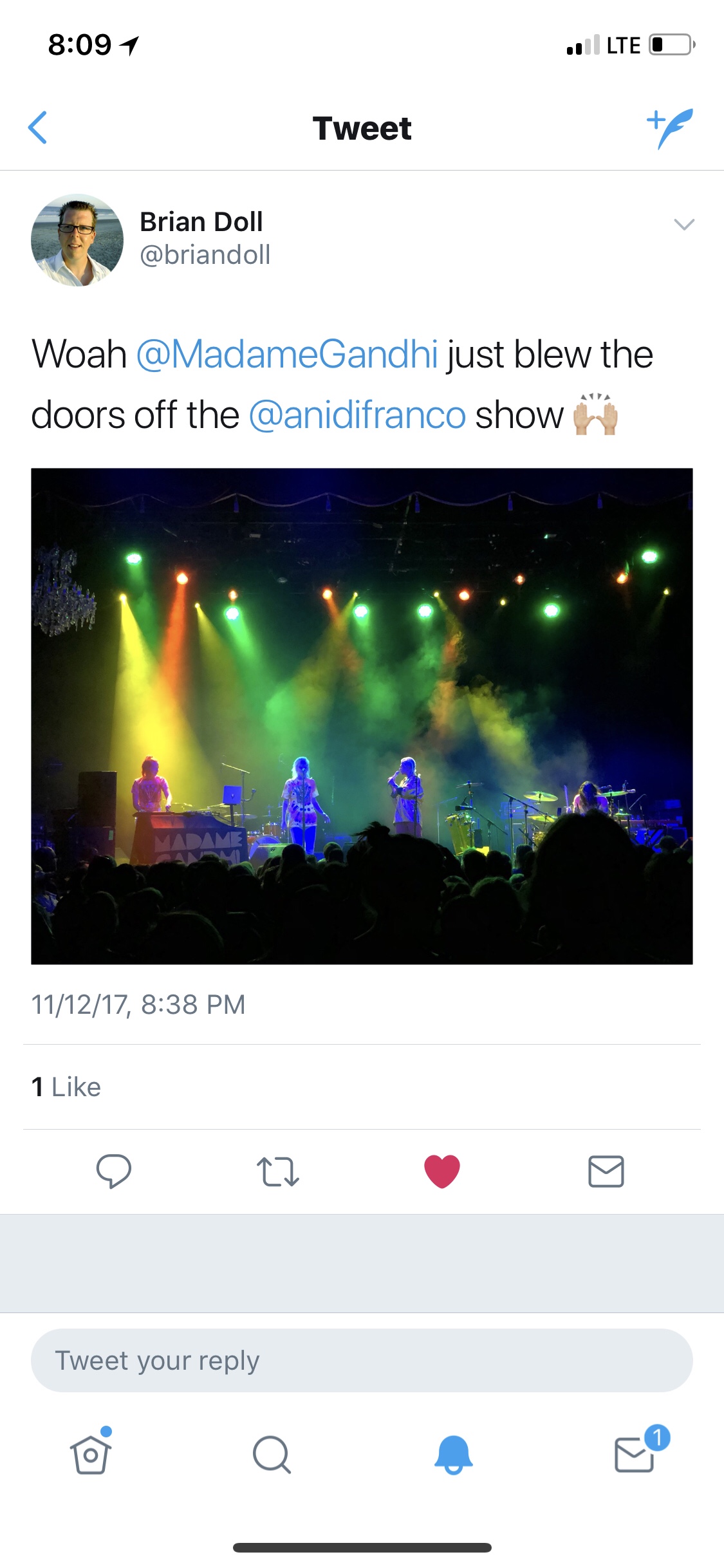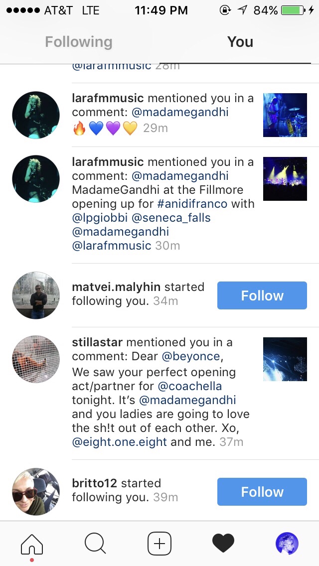 Expectations are your biggest enemy on the road – I will always remember this and it ended up helping me so much on the India tour to follow – the best thing you can do is be as present and dialed into the moment as possible, bringing as much if not all the energy of the show entirely from within before expecting chemistry from without, and slowly, bringing the audience into your world, if they want to come, if they don’t you humbly serve with performance and joy and prowess, offering up what you have without expectation of validation or love or applause, but simply gratitude that you get to be on a stage offering what you think and believe to a group of people. After Portland, I learned that, and instead focused on having a party with the band on stage, dialing into the quality of my own drumming and singing and authenticity of purpose, expecting nothing from the audience but instead being very centered and confident in my own energy, inviting with my vibe the audience to come into Madame Gandhi world…a world that is collaborative, emotionally intelligent, a world in which we are linked and not ranked…a future that is female…<3