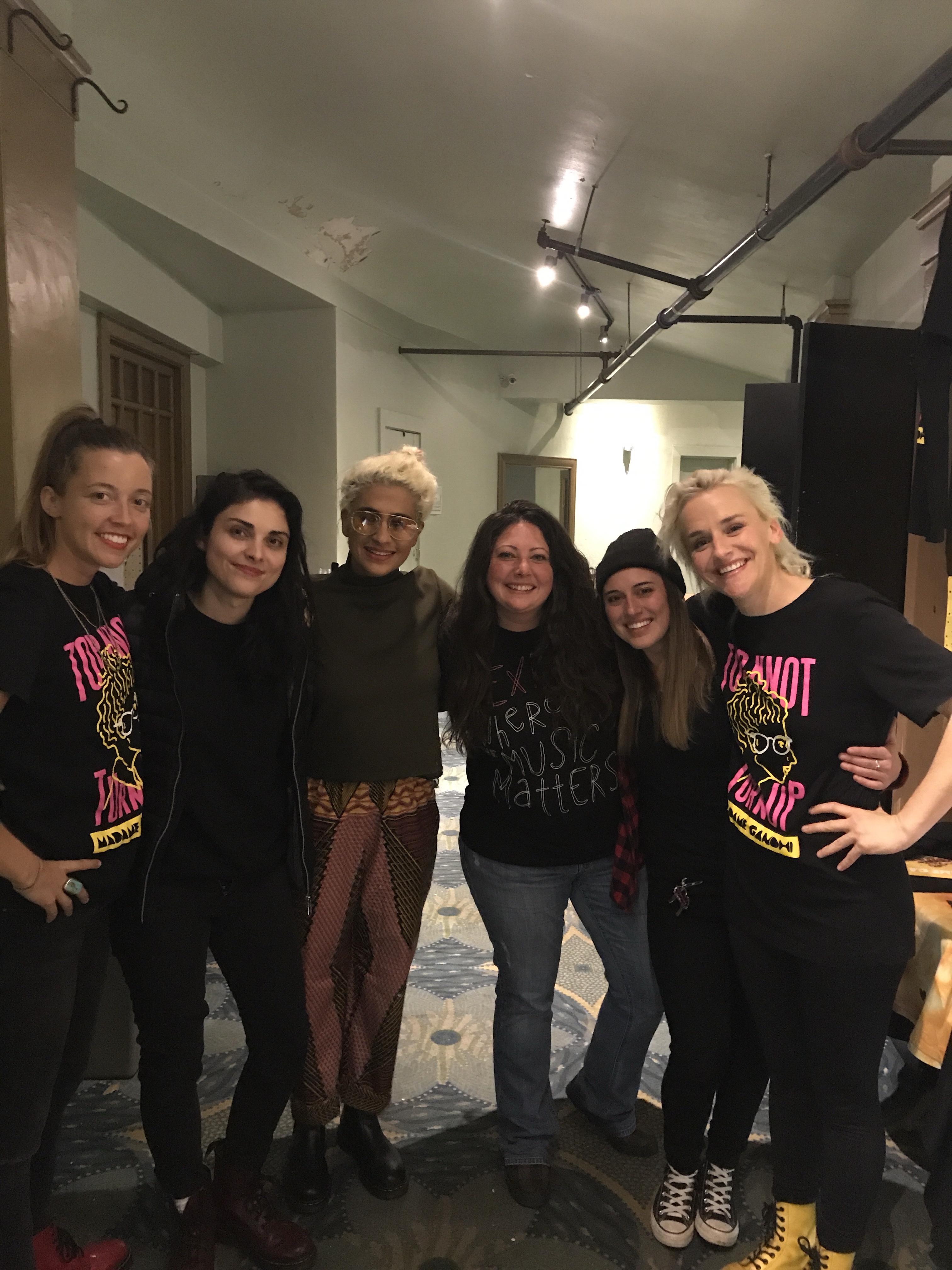 The whole tour manifested magic from the start, the way the dates lined up, the cities, the band. So much luck and prosperity followed the tour, setting me up to shut out the noise and be able to deliver my music and my message clearly on the stage each night in each city. I remember asking DJ and synth-goddess LP Giobbi back stage at Mothership Festival back in October if she was an Ani DiFranco fan…her eyes lit up. I remember asking her if she was free the second week of November…her eyes lit up…full teeth smile…I remember asking her if she knew anyone with a tour van…she had one…I remember asking her if she knew anyone in Eugene, OR since that was the only city on the tour where we didn’t have a place to stay…she said she grew up there and her whole family and childhood house is there. Lara drove the whole tour, and sold Merch and performed and tour managed. Ale Robles of Le Butcherettes, my favorite drummer discovery of the year from back at SXSW 2017, was available and down to the do the tour and brought the show to life. Bibi McGill, former guitarist and music director for Beyoncé whom I had met over the summer when we collaborated together at Wanderlust Festival in Lake Tahoe not only sat in as our guest in Portland, but flew down to LA to accompany us on stage for the final night of the tour that would also be her birthday!!!