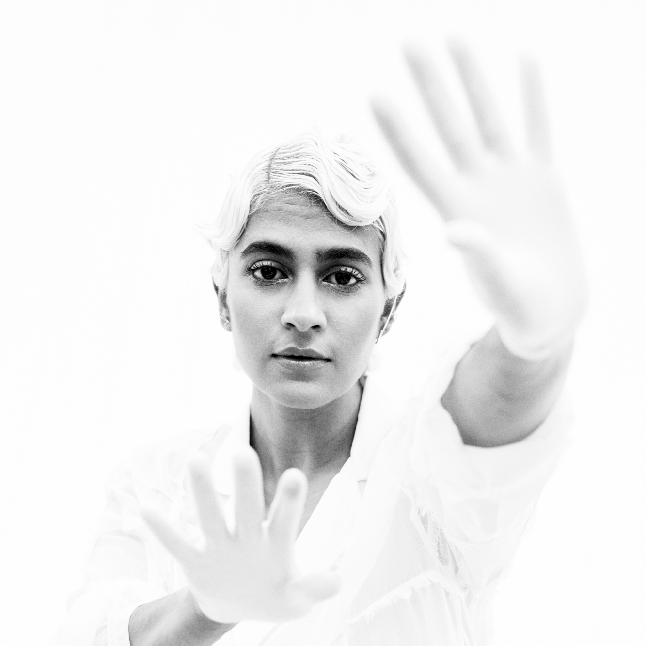 The trio began working together in what Gandhi describes as a “true three-way collaboration” to create the dreamy, visualized landscape of “See Me Thru.” Their collective vision is represented in the hypnotic new video, which sees Gandhi, Ti and Catherine moving through a series of refractive-light sets, interacting with waterfalls, a romantic pool, and, in Gandhi’s case, a killer drum set.