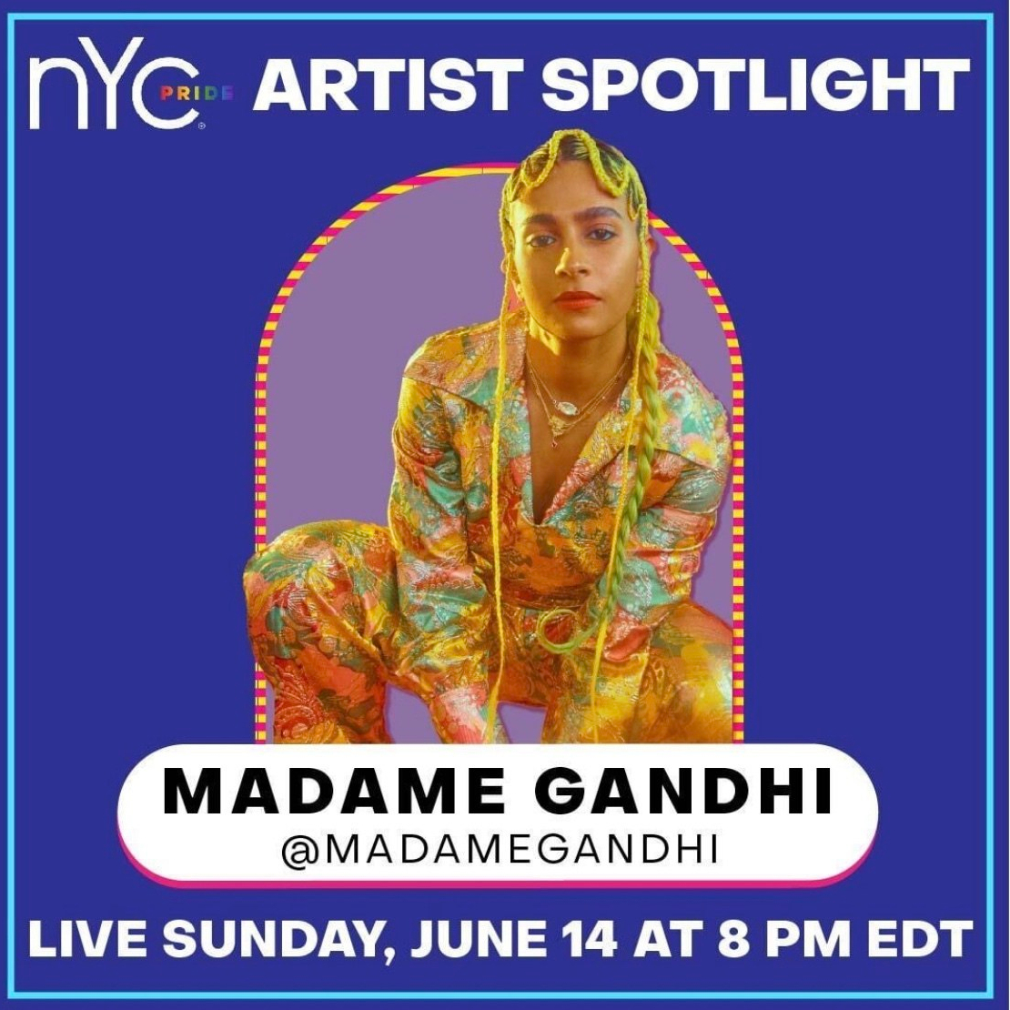 Madame Gandhi took over the @NYCPride Instagram account on June 14th to celebrate the 50th anniversary of the first Pride March held in 1970. Watch the full show below.