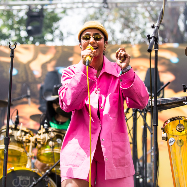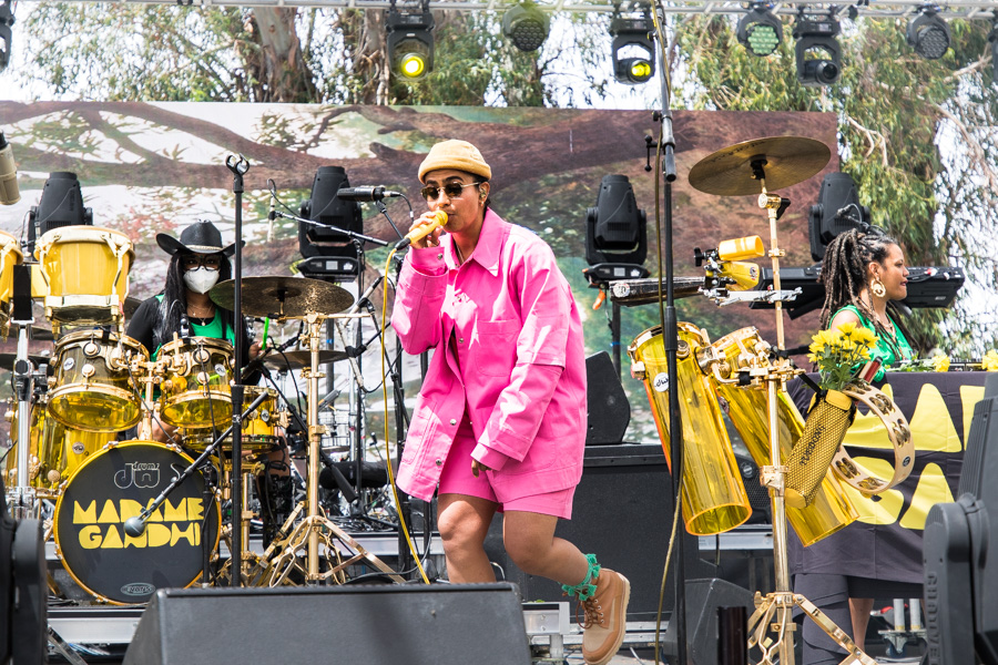 “We don’t get time to soundcheck at these big festivals, so will you do one with me?” asked Madame Gandhi, whose name is Kiran Gandhi. She then proceeded to play her array of percussive instruments on stage, to the approval of the crowd. It was tough to pin down Gandhi as an artist: She rapped, sang, banged out percussion and hopped behind the drums.