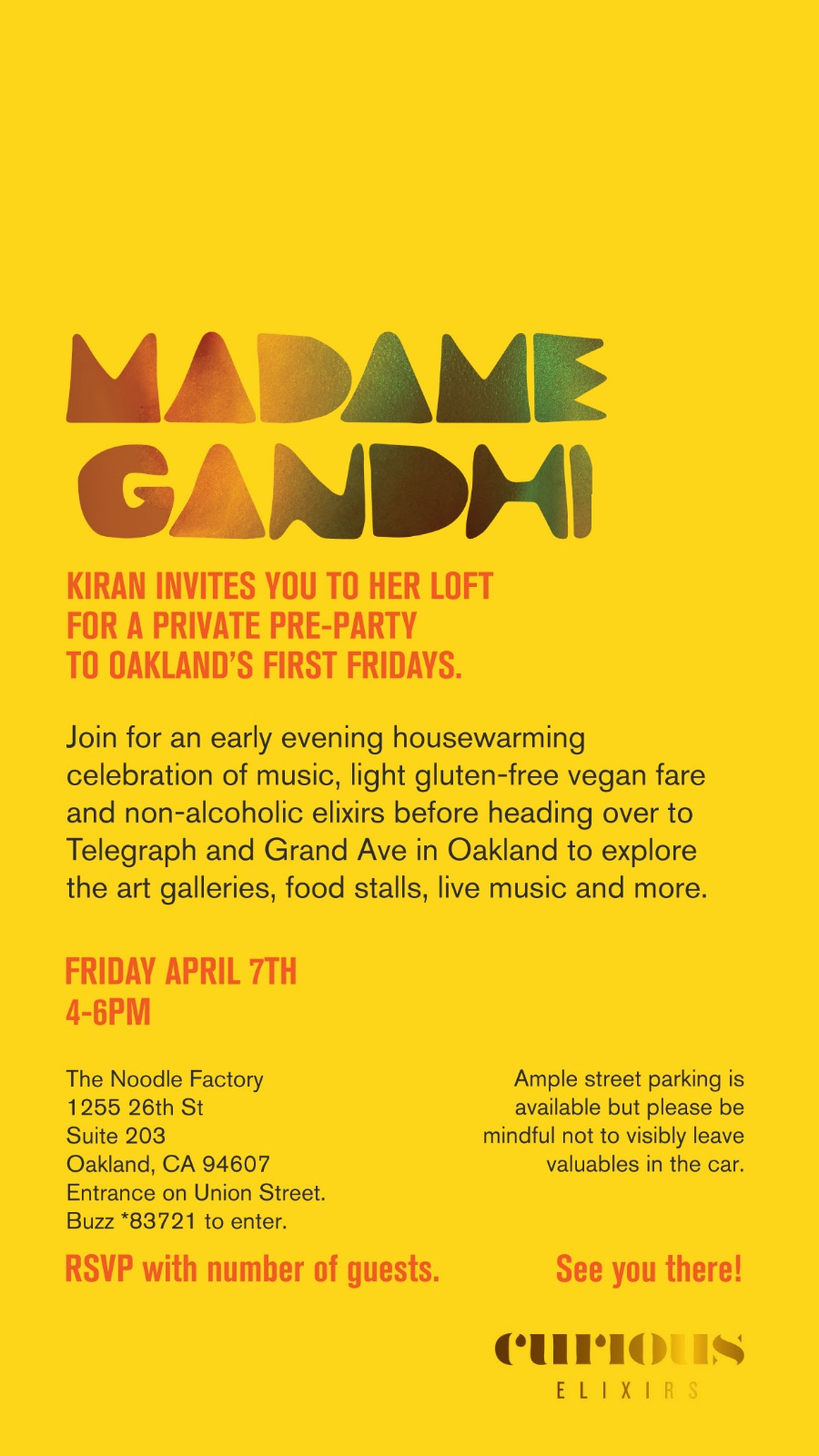 April 7, 2023April 13, 2023 Oakland First Fridays x Madame Gandhi Housewarming Full moon in libra Photos by Ginger Fierstein Flier by Sara Cifu Share this: Click to share on Facebook (Opens in new window) Facebook Click to share on X (Opens in new window) X Click to email a link to a friend (Opens in new window) Email Click to share on LinkedIn (Opens in new window) LinkedIn Like Loading...